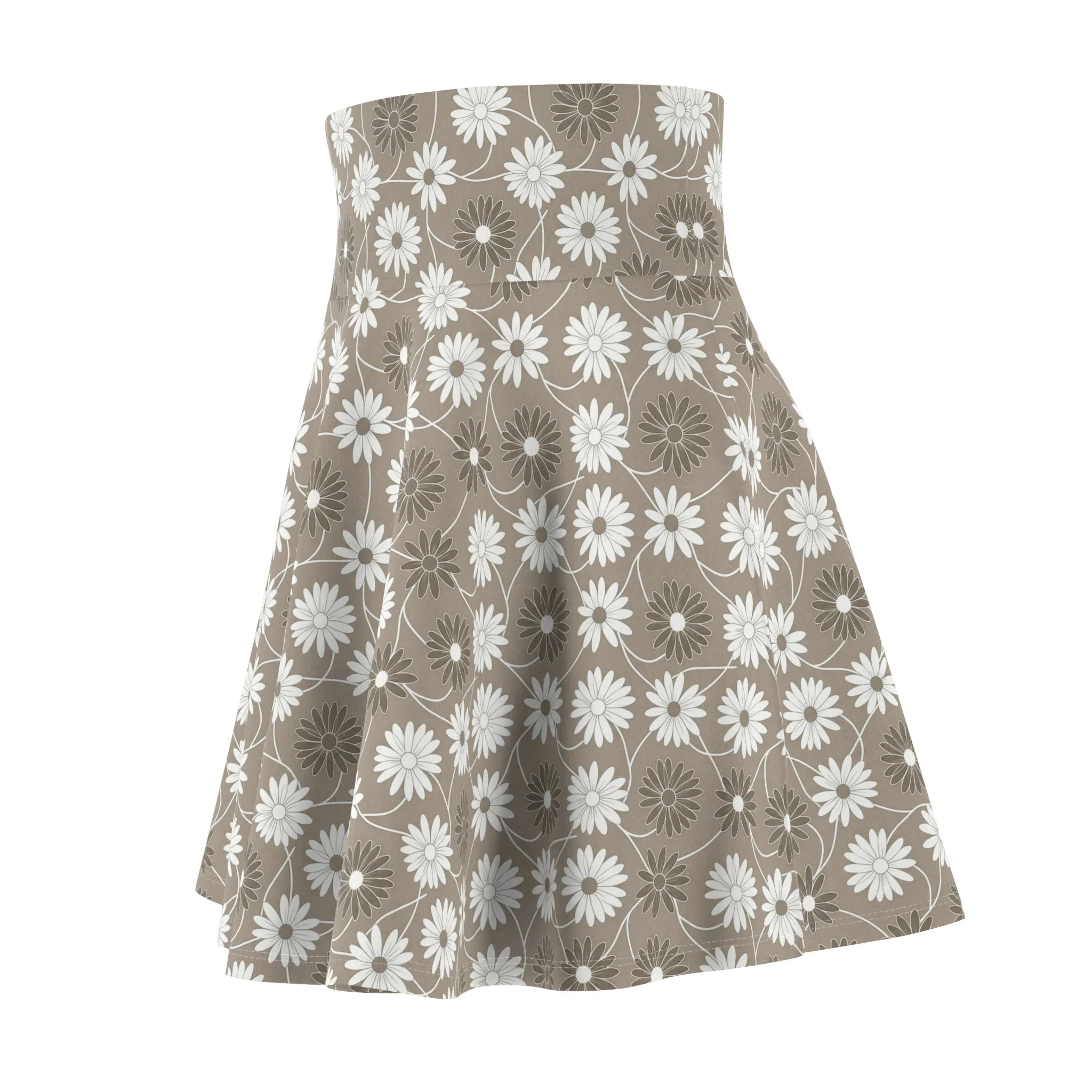 This Daisy Meadow Skater Skirt in beige floral design gives off a whimsical and feminine vibe, perfect for spring and summer. Ideal for women who love to showcase their girly and playful side, this skirt is great for picnics, brunches, and outdoor parties.